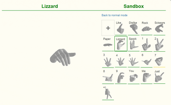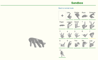 The app currently supports two languages (American and Russian) and one experimental mode with various assumed gestures such as: Like, Dislike, Lizard etc. While in a SandBox mode user can as well add his own gesture.